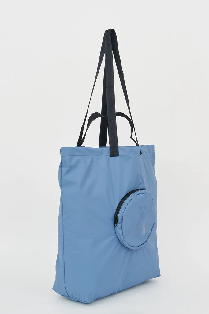 Designed for everyday use, the Proin bag is made from 100% recycled waterproof fabric that folds into a zippered pocket with a convenient handle on the side. Carry it by the long or short handles.