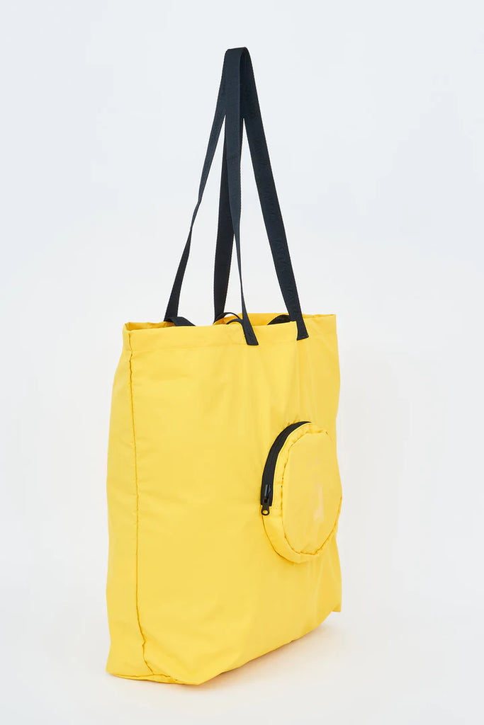 Designed for everyday use, the Proin bag is made from 100% recycled waterproof fabric that folds into a zippered pocket with a convenient handle on the side. Carry it by the long or short handles.